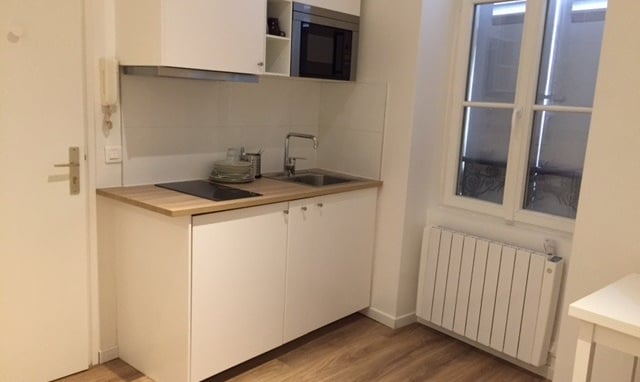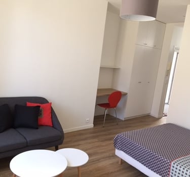 F1 23m2 , proche du pôle universitaire Lardy, très calme, idéal étudiant, rénové et équipé : plaque cuisson, micro-onde, frigo intégré, lave-linge, salle d'eau équipé (douche, meuble lavabo, radiateur), table repas, bureau, sofa, lit 140, placard. Abri vélo dans la cour.